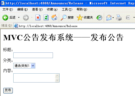 下面我们一步一步完成“MVC公告发布系统”的公告发布功能,等做完这个功能,上面的问题就明了了。