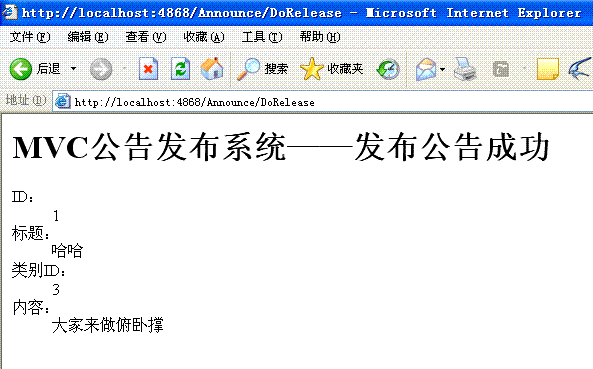 13 <h1>MVC公告发布系统——发布公告成功</h1>