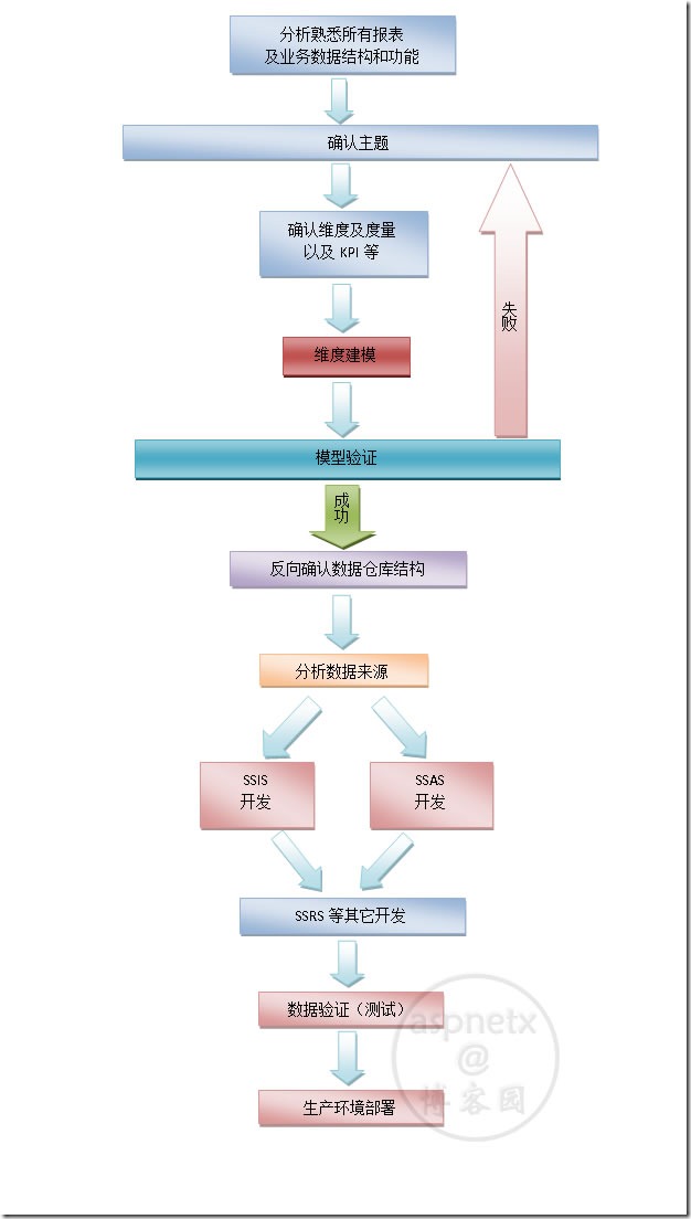 此图是根据个人经验总结出的一个BI通用流程,适用于报表方案,多维分析方案,但不适用于数据挖掘的方案。